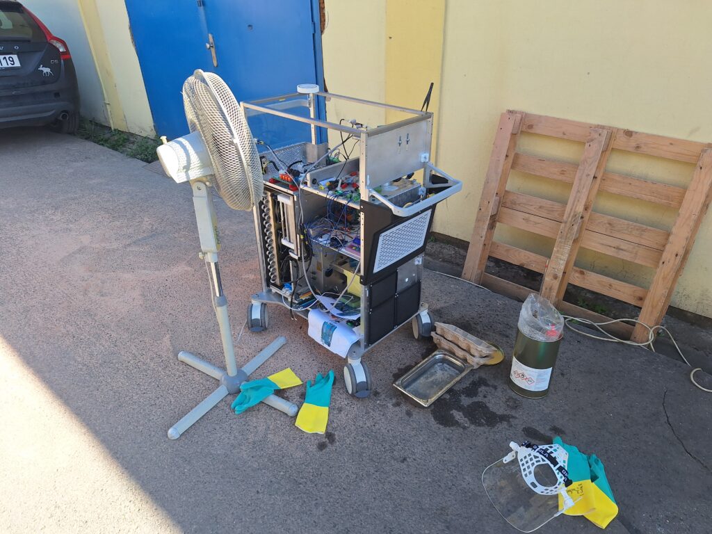 Navrhli jsme a postavili speciální zařízení, v němž byl čip umístěn vzhůru nohama. Pod ním probíhala „kyselinová fontánka“, která kontinuálně omývala a odplavovala uvolněný materiál. Kontaminovaná kyselina se následně zachytávala v rezervoáru, filtrovala a znovu používala – čímž jsme dosáhli efektivního uzavřeného cyklu.